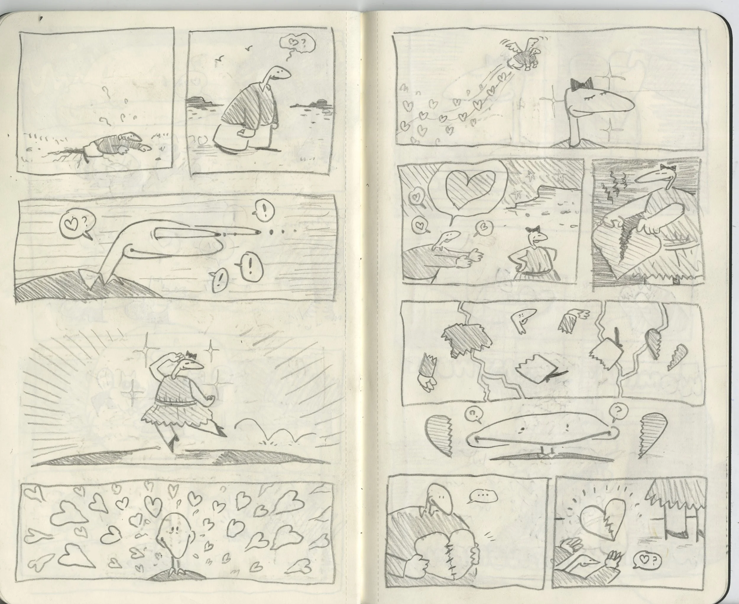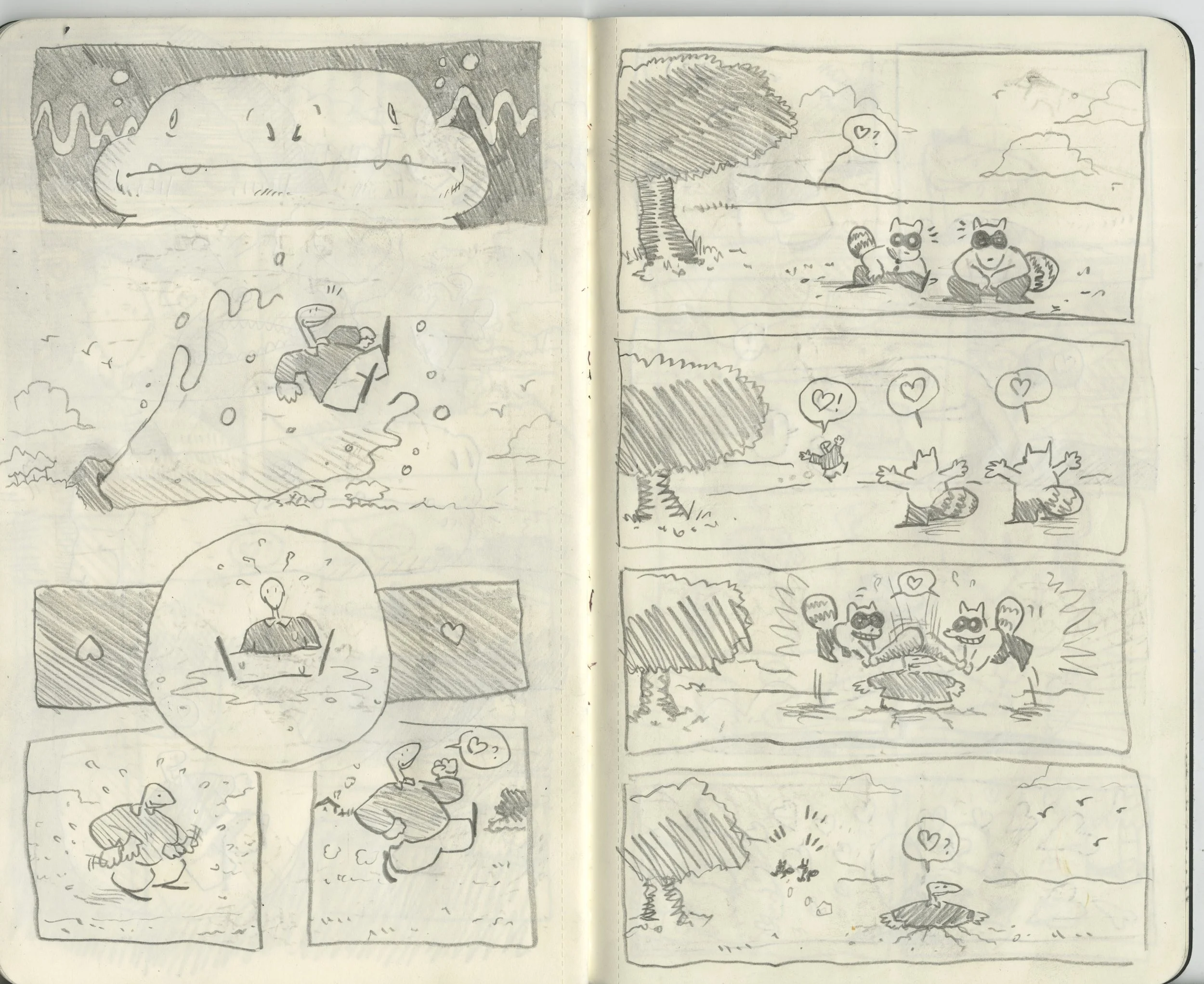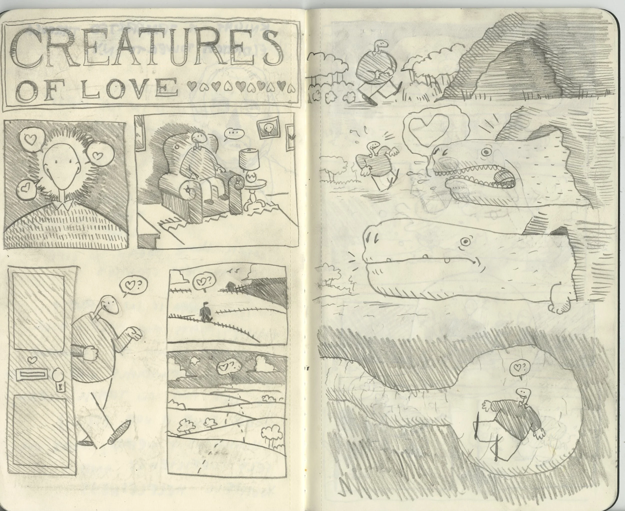 CREATURES OF LOVEAn improv notebook comic, CoL follows a little creature with big love. Pencil - 2022Click images to enlarge. View fullsize View fullsize View fullsize View fullsize View fullsize View fullsize