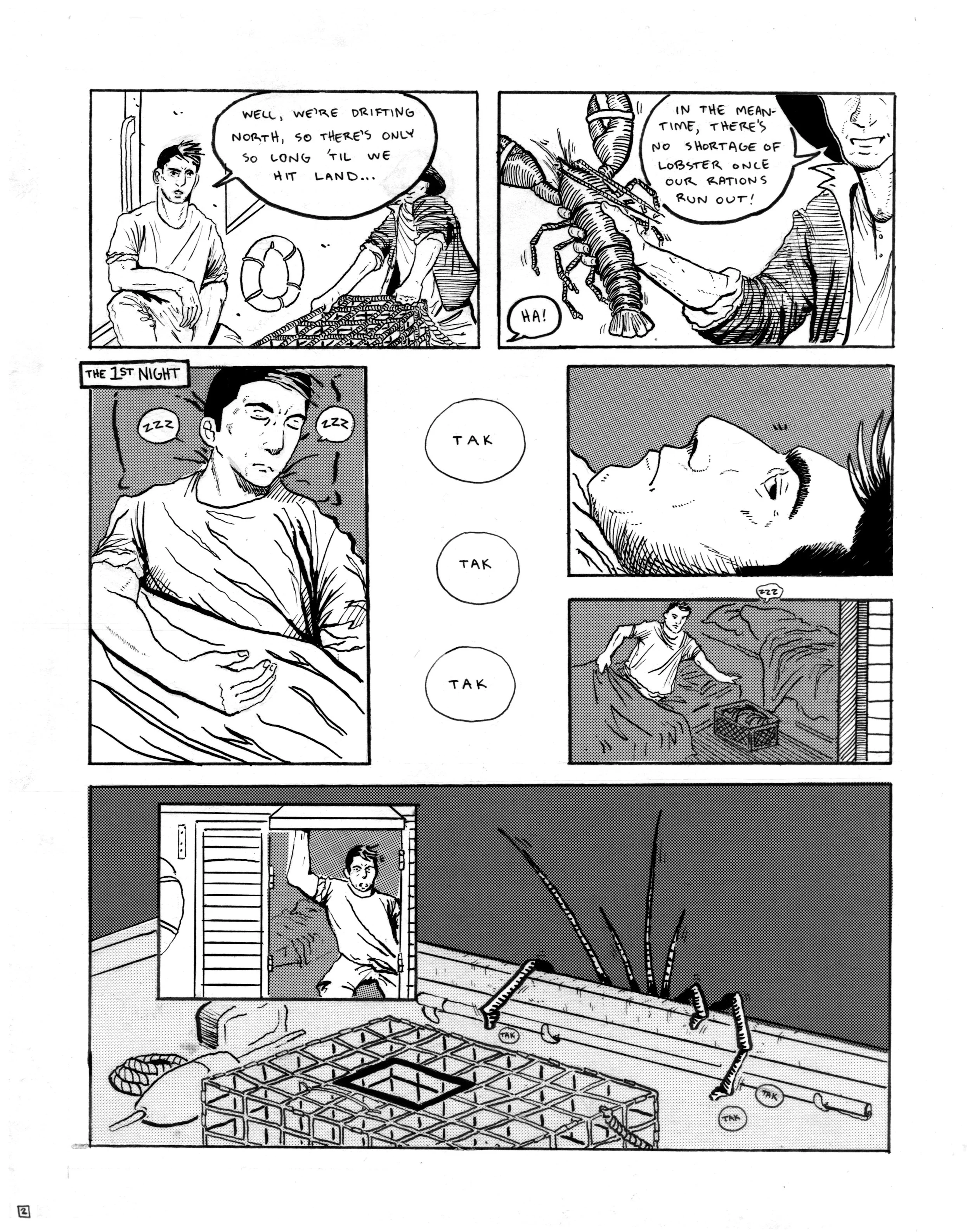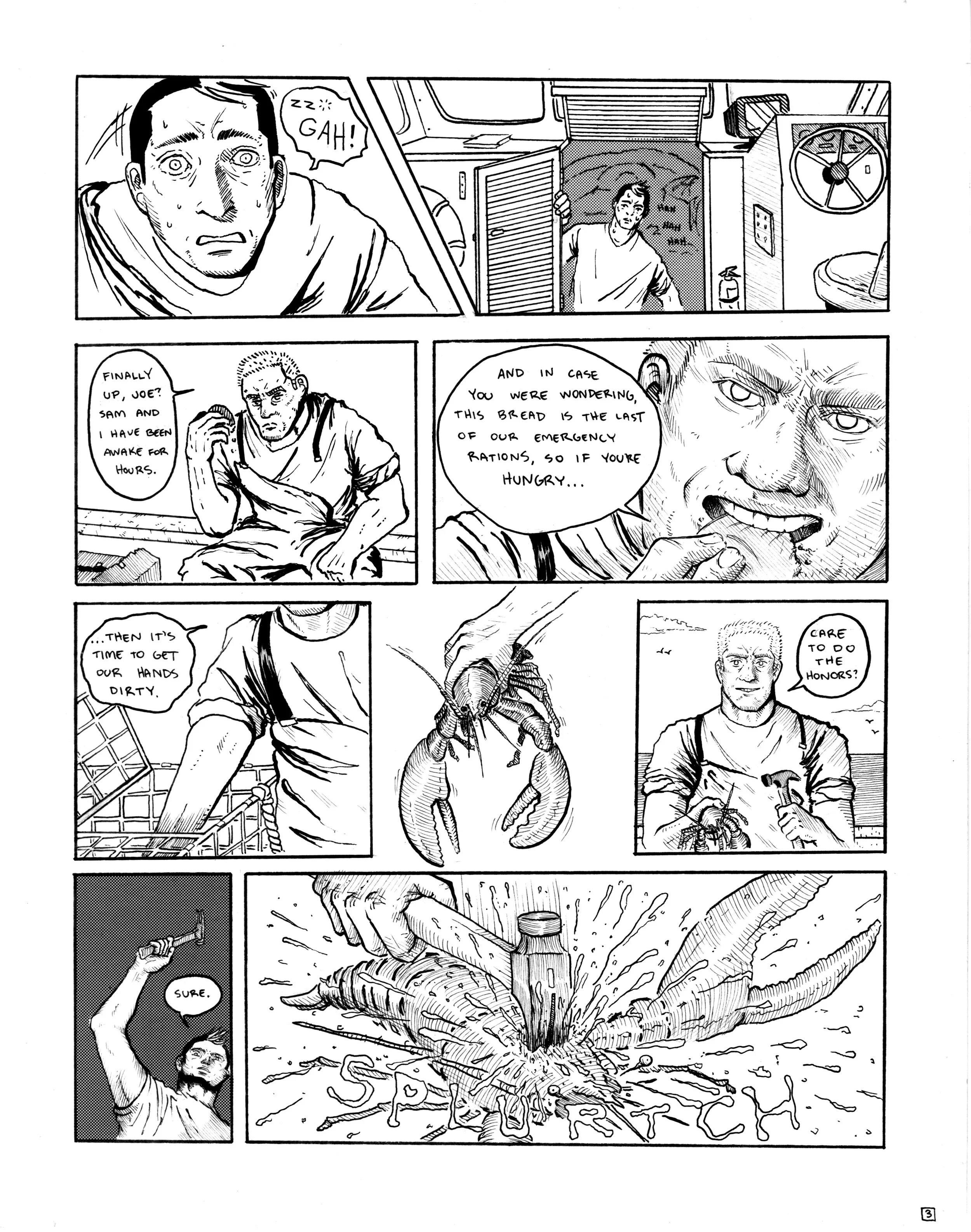 LOBSTERMENThree lobstermen become stranded at sea. Strange occurrences begin. Pen & Ink, Screentone - 2022Click images to enlarge View fullsize View fullsize View fullsize View fullsize View fullsize View fullsize View fullsize View fullsize View fullsize